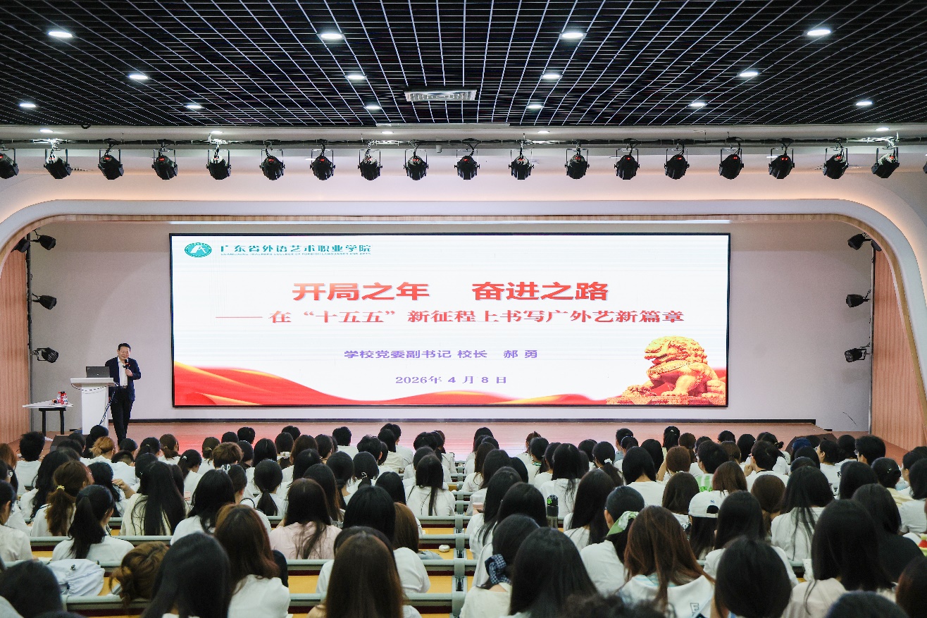 4月8日下午,学校党委副书记、校长郝勇以“开局之年 奋进之路——在‘十五五’新征程上书写广外艺新篇章”为主题,在燕岭校区为学前教育学院、基础教育学院、数字创意学院学生代表及燕岭校区教师讲授“思政第一课”。图:校长开讲“思政第一课”郝勇从“把握时代坐标、勇担历史使命”“融入广东实践、彰显外艺担当”“锤炼过硬本领、书写青春答卷”三个维度展开系统阐释,带来一堂既有理论高度、又有现实温度的思想政治教育课。...