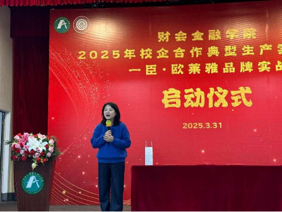 为加强产教融合校企合作,提升学生实践能力与就业竞争力,3月31日下午,财会金融学院于天平架校区7楼礼堂成功举行2025年校企合作典型生产实践项目一臣•欧莱雅品牌实战启动仪式。学校党委委员、副校长郝勇、财会金融学院党总支书记马韵、院长陈森玲、欧莱雅百库代表刘丽艳、一臣校企总监郭磊、业务经理李苇杭、培训经理凌玲、教师代表以及众多怀揣实践梦想的学生参加了仪式。活动由产教融合教研室主任罗维佳和学生代表陈振烨主持。