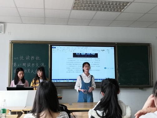 紧接着便是读书交流环节。寒假期间,每位社团成员都写了一篇书评或影评,在这次交流会上进行分享。每个部门派代表依次上台分享了杨绛的《我们仨》、余华的《在细雨中呼喊》,电影《巨额来电》、《金陵十三钗》、《泰坦尼克号》,电视剧《知否知否,应是绿肥红瘦》,动漫《黑子的篮球合集》等。看来寒假里社员们都收获满满!