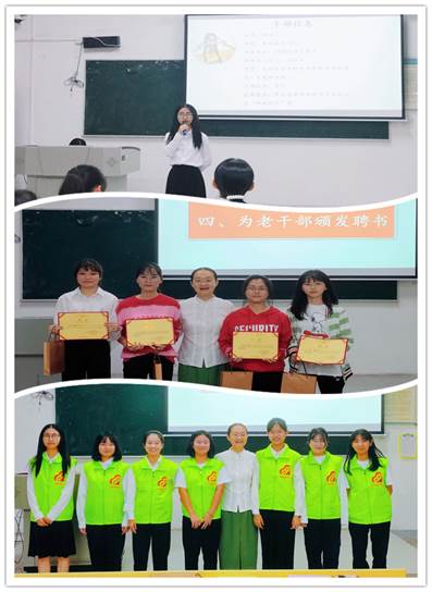 颁发奖状和聘书环节同样激动人心。主持人宣布第八届优秀干部、优秀干事、优秀部门名单,指导老师为获评优秀的同学颁发奖状,一张张奖状既是对优秀的同学们一年来辛勤付出与出色表现的最大肯定,也激发着台下的心悦成员都积极向“优秀”学习和靠拢。紧接着老师为第八届老干部颁发了聘书和精心准备的纪念品。