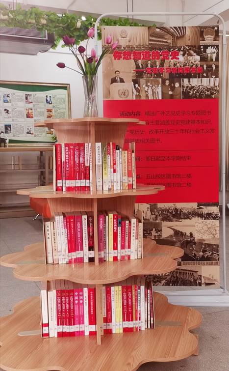 党史学习教育线下图书展分别设在五山校区图书馆三楼和燕岭校区图书馆二楼,展览时间为即日起至本学期结束。此次展览共精选了党史学习专题图书近100册,图书内容主要涵盖党史党建基本知识、中国共产党历史、改革开放三十年和社会主义发展论等书籍,展示了中国共产党走过的光辉历程、取得的伟大成就、积累的宝贵经验及其带给我们的深刻启示。