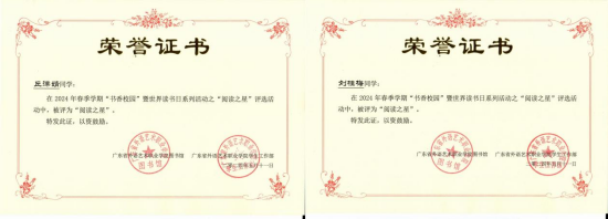 图:“阅读之星”荣誉证书