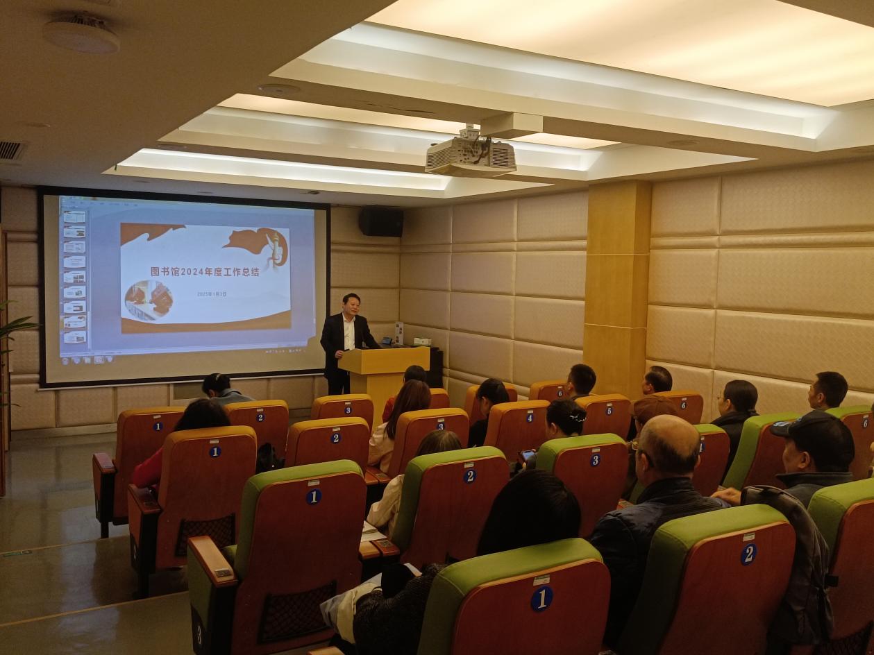 随后,王佳代表图书馆领导班子作2024年工作总结报告。报告用数据化的图表详尽地回顾了2024年度图书馆文化育人、资源建设、环境提升、服务创新等重点工作的开展情况。2位班子成员先后围绕一年来分管领域的工作亮点、存在问题及改进措施进行了述职汇报。