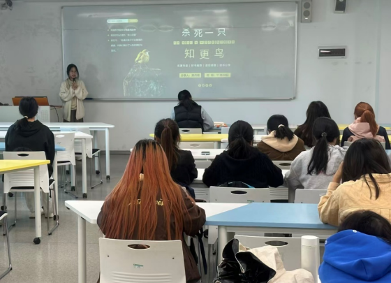 首先开启的是图书分享环节。六位同学结合精心制作的PPT,从作品介绍、亮点解读、佳句赏析、阅读感悟等方面切入,带来了兼具深度与温度的阅读分享。编辑部郑海媚同学分享了茅盾的《子夜》,深入剖析了旧中国民族资产阶级在时代浪潮中的挣扎与沉浮,还原了那个风云变幻的民国时期商业图景。传媒部黄丹霞同学深情解读了《杀死一只知更鸟》,带领大家感悟书中关于正义、善良与勇气的深刻内核,体会跨越种族与阶层的人性光辉。学术部赖月园同学推荐了张嘉佳的《云边有个小卖部》,细腻勾勒出云边镇的烟火温情与少年成长的悲欢离合,唤醒了大家心底对故乡与亲情的柔软牵挂。学术部赵如凤同学带大家走进夏洛蒂·勃朗特的《简·爱》,重新品读主人公独立自强、追求平等与真爱的人生信条,感受女性觉醒的力量。秘书部林云燕同学分享了《你当像鸟飞往你的山》,深度挖掘了原生家庭的枷锁与自我救赎的艰难,引发了同学们对成长与和解的思考。秘书部黄丽群同学解读《一念归山烬》,生动展现了书中人物在命运漩涡里的坚守与抉择,传递出关于执念与释怀的人生哲思。六位同学的分享从不同维度解锁了书籍的魅力,既点亮了大家的阅读灵感,也搭建起思想碰撞的桥梁。