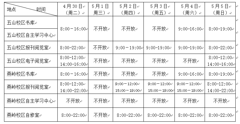 根据学校关于五一节放假的通知,五一节期间图书馆开放时间安排如下: