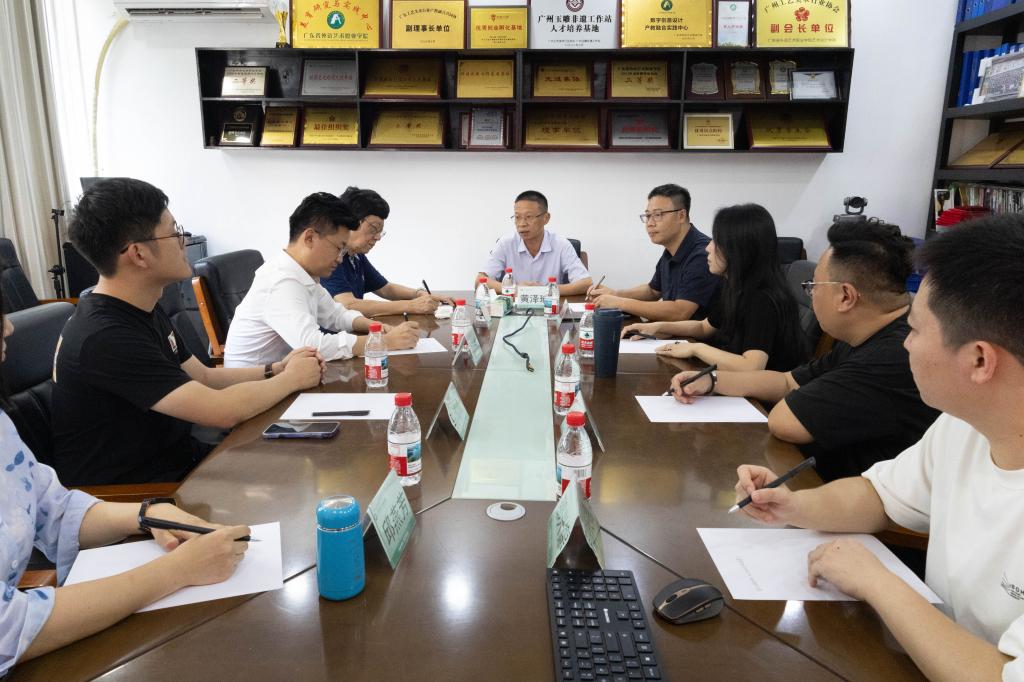 9月17日,广东省工业设计协会荣誉会长、人才专委会主任杨向东、秘书长杨杰、人才专委会执行主任马堉峰一行到访我校,洽谈依托“东莞杯”比赛推进政校行企合作,深化产教融合发展,提高人才培养质量。学校党委副书记黄泽瑜接待了杨向东一行,数字创意学院负责人、相关专业老师参加活动。