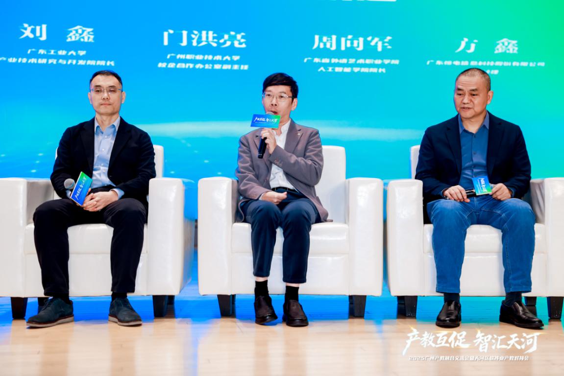 在题为“数智化转型中的产教融合新机遇”的平行沙龙中,人工智能学院院长周向军指出,当前校企合作主要存在三大“堵点”:利益不同频、资源不对等、评价不闭环。针对这些难题,人工智能学院与广州育茵科创有限责任公司合作构建的“三链共生·四阶递进·多层联动”模式提供了有效解决方案。该模式以“三链共生”为核心,深度融合产业链、教育链与科研链。企业将符合“三真”(真实环境、真实项目、真实压力)要求的商业项目导入教学环节,校企协同将项目解构为“认知-体验-实践-创新”四个递进阶段的教学模块,师生创新成果则反哺企业研发,形成良性循环。学院创新实施“四阶递进、三师协同”机制。校企导师共同指导学生完成从技术应用到产品孵化的全流程实战,构建了从专业核心、实践教学、项目实践再到实习就业的完整人才培养闭环体系,学院与企业共建“导师学长制工作室”,实行校企“双负责人”共管模式,确保人才培养与企业需求无缝对接。