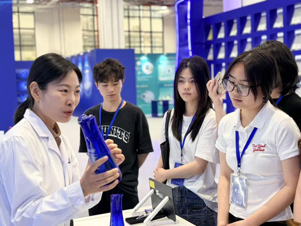 师生们先后参观了洗涤研究中心、企业直播间,并与企业代表进行了面对面交流。在参观过程中,同学们对蓝月亮的沐浴露产品留下深刻印象,普遍反馈其护肤效果显著、气味舒适,同时对洁霸系列清洁产品的高效去污能力表示赞赏。现场展示的“水合失衡与屏障修复”等护肤科技原理,以及“1000亿个保湿因子”“锁住水分”等产品创新点,进一步加深了同学们对产品研发与电商卖点结合的理解。毕业生庄佳玲分享了从金牌客服成长为团队组长的经历,以“成长没有捷径,但有方法”寄语学弟学妹,带来职业发展的启发。