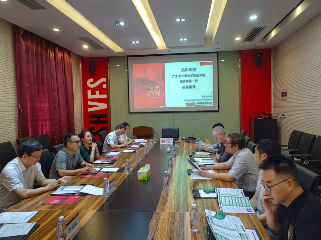 在上海温哥华电影学院,学院副院长陈晓达介绍了温影的发展历程、专业设置、课程特色、海内外师资、产教融合模式等。他表示,温影通过原汁原味引进北美电影工业规范,把好莱坞电影工业的规范和标准带到中国,已构建覆盖电影制作、视觉媒体声音设计、3D动画与视觉特效、影视编剧、游戏设计等领域的全产业链教学体系。调研组参观了温影具有国际领先水平的专业影视后期制作机房、电影声音实验室、3D动画工作室、电影表演实训室、影视化妆工作坊等学院硬件设施,深入了解了实践教学模式和产出的高水平影视作品。双方围绕影视人才培养、创新机制体制合作、建设国际影视传媒学院等方面开展了深度研讨。马栩生希望两校结合区域影视产业现状与发展需求,进一步整合优势资源、创新合作体制机制,将温影的国际化教育资源与实训模式嵌入我校影视人才培养全过程,共同推动影视职业教育的进步与发展,为粤港澳大湾区影视产业发展赋能。