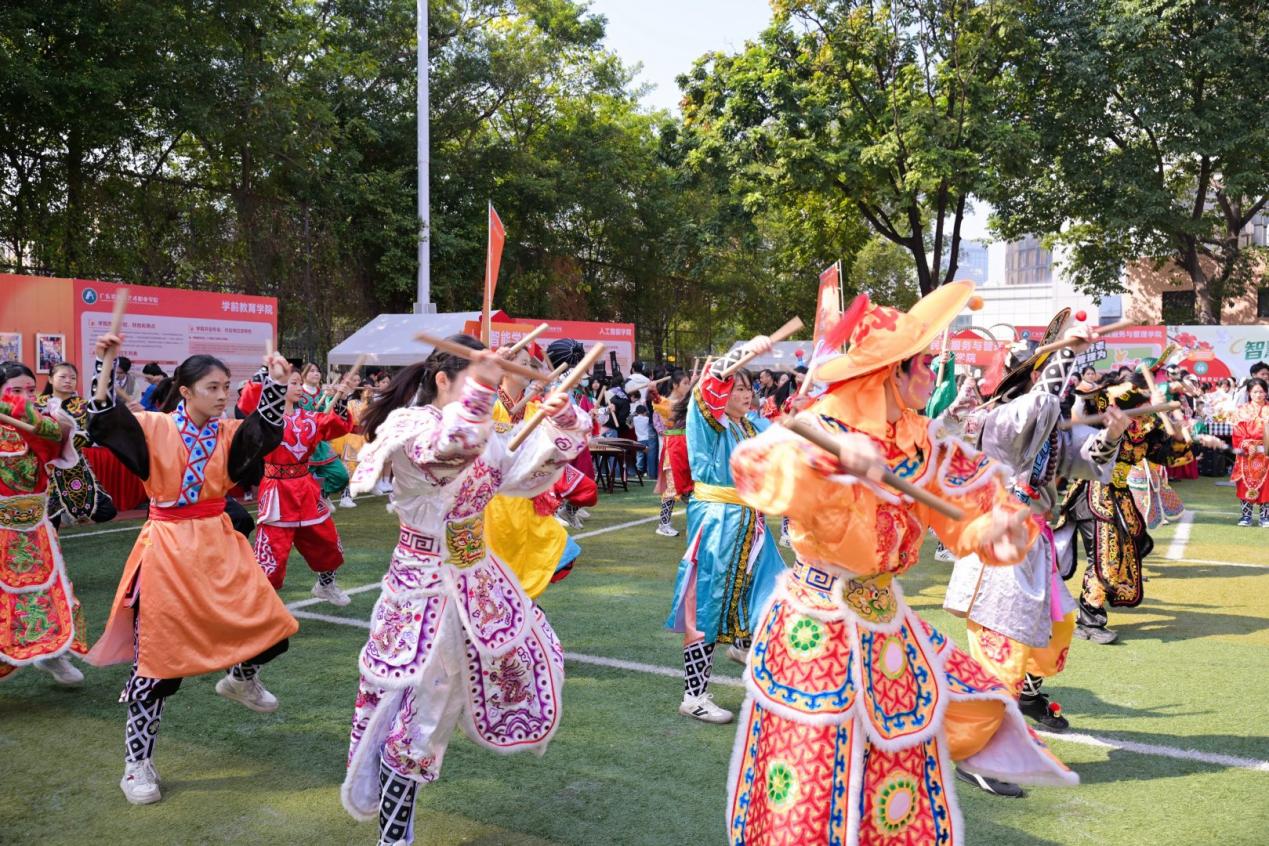 活动主会场设在五山校区足球场,各二级学院精心布置了特色鲜明的技能展示区。基础教育学院展示了绿幕AI视频制作、全英文脱口秀以及数学思维游戏等,体现了在基础学科教学与现代技术应用方面的创新成果。外语外贸学院则通过英文产品介绍短视频、跨境电商直播、普惠旅游词讲解等展示方式,彰显了其在语言教学与国际贸易实践中的深厚底蕴。演艺学院在文旅演艺主题园区实景展示中,带来了国乐演奏、舞蹈、声乐等精彩表演,展现了艺术教育的丰硕成果。数字创意学院的醒狮表演、马赛克贴片与珐琅彩胸针DIY、AI心情邮报生成等互动项目,融合了传统与现代创意元素。学前教育学院的托幼一体课程、机器人跳舞、少儿编程等展示,凸显了其在幼儿教育领域的专业与用心。人工智能学院展示了AI多功能学娱桌互动、专业电影级布光及拍摄教学等前沿技术,体现了学院在人工智能领域的探索与应用。民政服务与管理学院的婚礼全流程实景秀、DIY手工发夹等展示,紧密结合社会服务需求,展现了专业的实用性。食品工程学院的分子料理技法、现场脆鱼皮制作、特色鸡尾酒与咖啡试饮等活动,让观众大饱口福,也展示了食品工程的专业魅力。财会金融学院通过助农数字人直播等活动,展现了在新时代财经领域的创新实践。艺术教育学院的民族舞、街舞表演以及现场绘书签等活动,充满了艺术气息。创新创业学院的学生创业项目团队作品展示,则为活动增添了一抹创业创新的亮色。