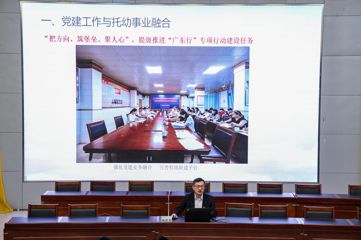 在经验交流环节,学前教育学院党委书记张武龙围绕全省高校“双带头人”“广东行”专项行动作交流发言,他介绍,学前教育与托育服务专业群党支部围绕“一老一小”“双百行动”等重大决策部署,全员全方位参与我省学前托育领域的政策咨询、标准研制、师资培训、人才培养,展现了教育、科技、人才等领域赋能经济社会发展的生动实践。