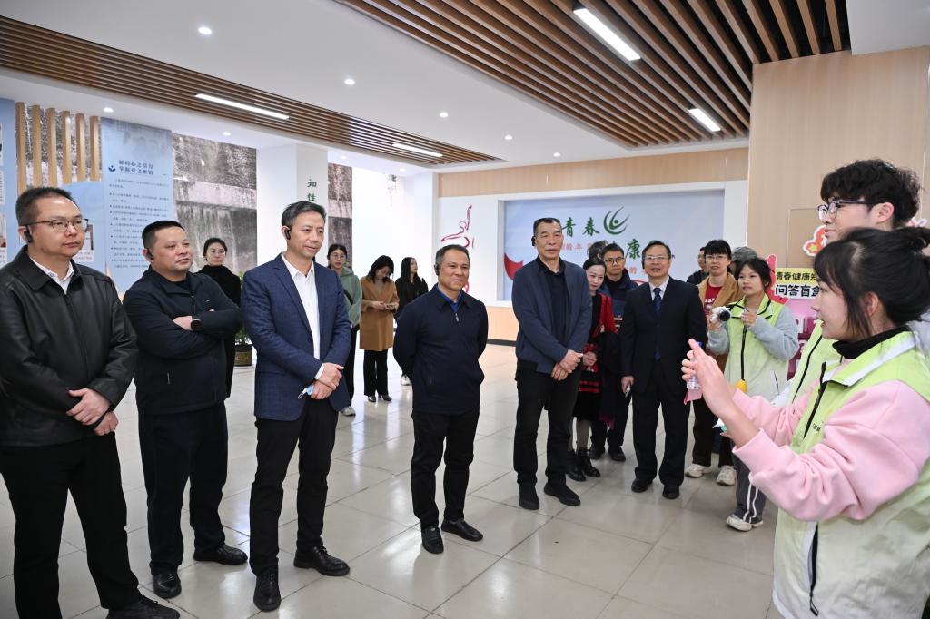 仪式后,参会领导嘉宾在俱乐部的教育培训室听取我校青春健康工作介绍——《青春健康,HAPPY赋能》,从育人模式构建、特色活动开展,到阵地建设成效、教育品牌的打造、学生成长反馈,我校系统展现了青春健康教育工作的探索与实践。与会领导嘉宾对我校深耕青春健康教育领域、多措并举护航学子成长的做法给予高度评价,认为我校的工作体系完善、特色鲜明、成效显著,为高校青春健康教育工作提供了可借鉴的宝贵经验。