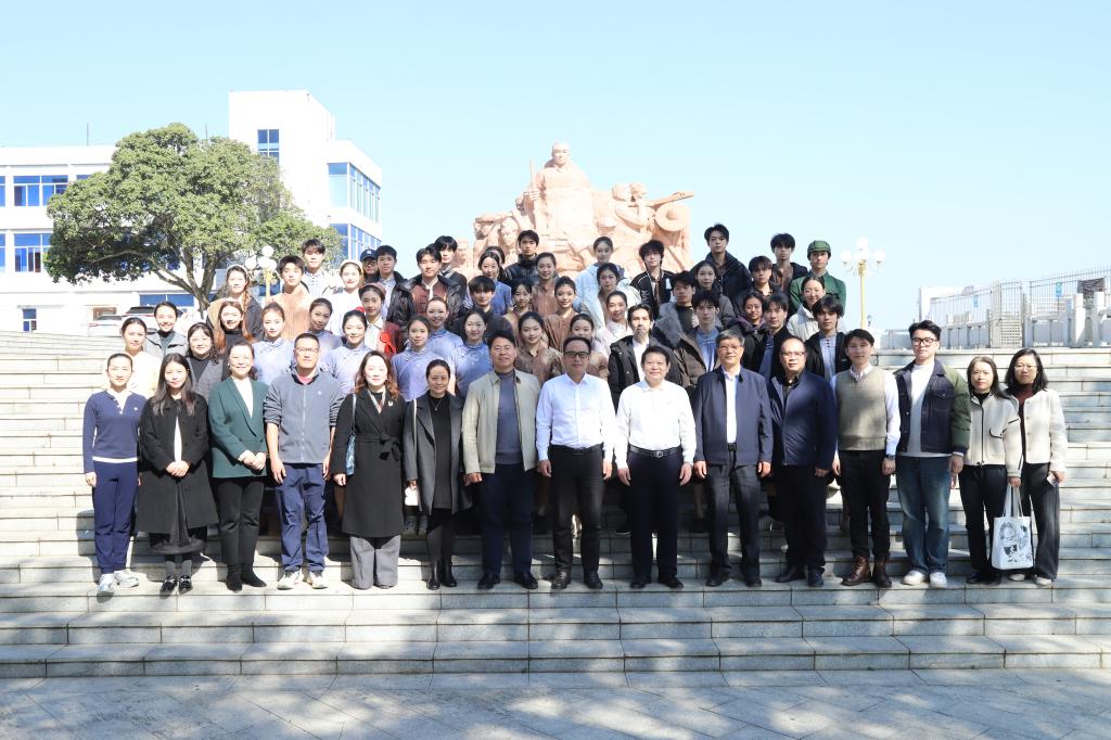 在雷州青年运河红色教育基地,调研组与“双百行动”小舞剧《先河》主创团队实地参观了雷州青年运河群英雕像、鹤舞地灵雕塑与建库开河纪念馆。在讲解员引导下,通过珍贵文物、历史照片与生动讲解,重温自力更生、百折不挠的运河建造历史,深刻感悟“30万人齐努力”的磅礴伟力与众志成城的团结精神。此次调研也为校地协同传承红色基因、以艺术再现历史——小舞剧《先河》的打磨升级提供了极为宝贵的鲜活素材与精神养分。