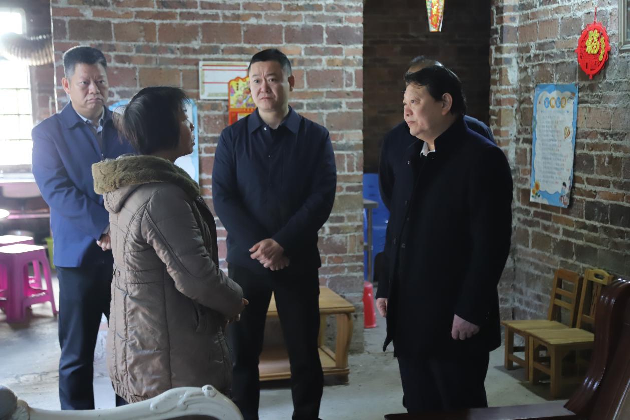 在吉水镇,调研组在镇领导、驻镇帮镇扶村工作队及低山村党支部书记的陪同下,走访慰问了吉水镇防返贫监测户和低山村困难群众。在关心了解群众的经济来源、子女教育及身体状况后,调研组送上学校慰问物资与新春关怀,叮嘱驻村第一书记密切关注群众需求,整合多方资源为群众排忧解难。