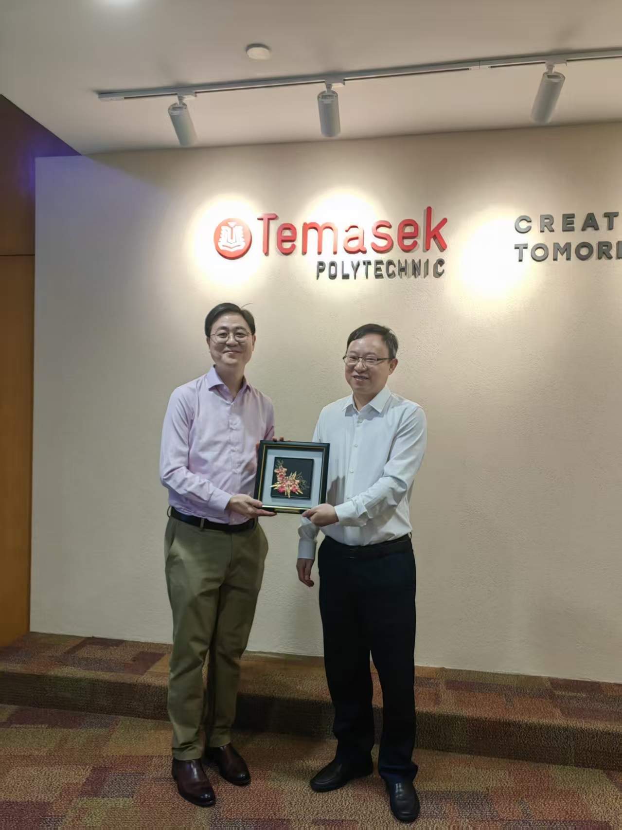 访问期间,淡马锡理工学院校长兼总裁钟金章、副校长兼副总裁胡传棋、国际关系处处长林定龙等校方领导热情接待我校代表团。双方在座谈交流中分别介绍两校办学特色、专业布局与国际化发展战略,就职业教育人才培养模式、实践教学体系、产教融合机制等内容展开深度交流,互赠礼品,奠定友好合作基础。