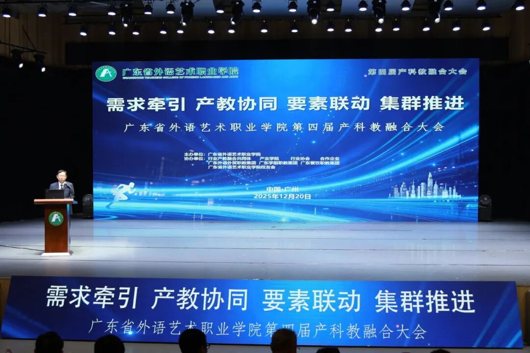 二是聚焦特色人才培养。主要体现在两个方面:一是外语和艺术对技能人才培养的赋能。广外艺所有专业的学生都应该具备外语能力和国际化视野的宽口径,培养出来的学生在这方面是与众不同的。二是艺术的特色。学校大力推行面向人人的美育,由艺术院校或院系作为美育的主体,非艺术专业作为美育的对象,在这方面广外艺做出了卓有成效的探索,并获得了省教学成果奖一等奖。学校的产科教融合大会深刻体现了专业和美育融合的思想。2024年,大会邀请广州市芭蕾舞团的两位演员,在悠扬的钢琴声中发布了“外艺面包”经典系列;2025年,邀请杂技演员以杂技剧的形式,隆重发布了“外艺面包”黑金系列。这些都体现了广外艺特色人才培养的探索和实践。