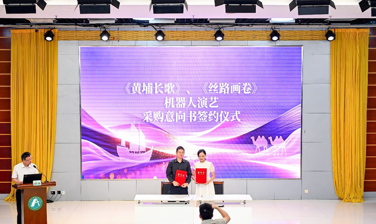 广州和盛影视科技有限公司、广州励盛文化产业有限公司现场与学校签订《黄埔长歌》《丝路画卷》《机动人心》等原创剧目采购意向书及《海丝赋》合作协议,教学成果成功从课堂走向市场,实现了“上课即上岗、实训即生产、作业即作品、产品即商品”。