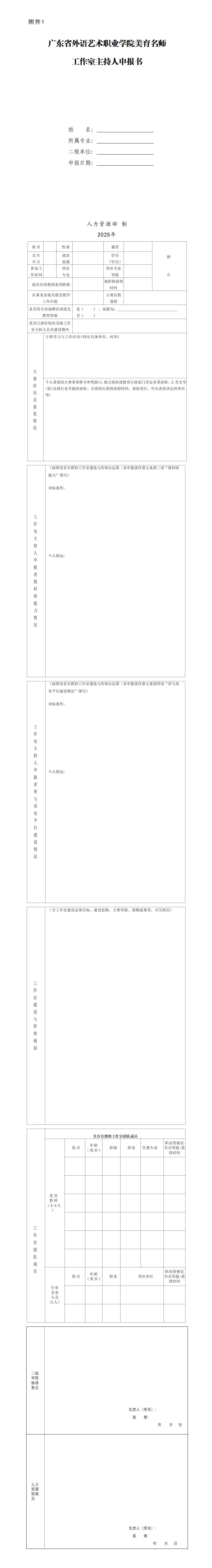 附件:1.广东省外语艺术职业学院美育名教师工作室主持人申报书