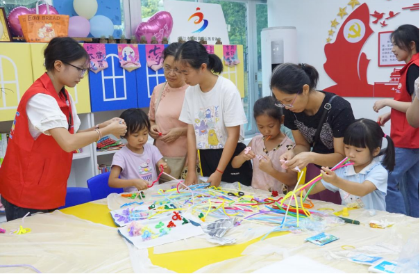 本次活动以“情满七夕,爱在港城”为主题,依托霞山区“百千万工程”实施背景,将传统节日文化与现代美育实践相结合。支教队员充分发挥专业特长,设计了诵读课堂、非遗扎染、创意扭扭手工等多项互动体验环节,吸引众多亲子家庭积极参与,在寓教于乐中传递七夕文化内涵,提升市民审美素养,增强文化自信。