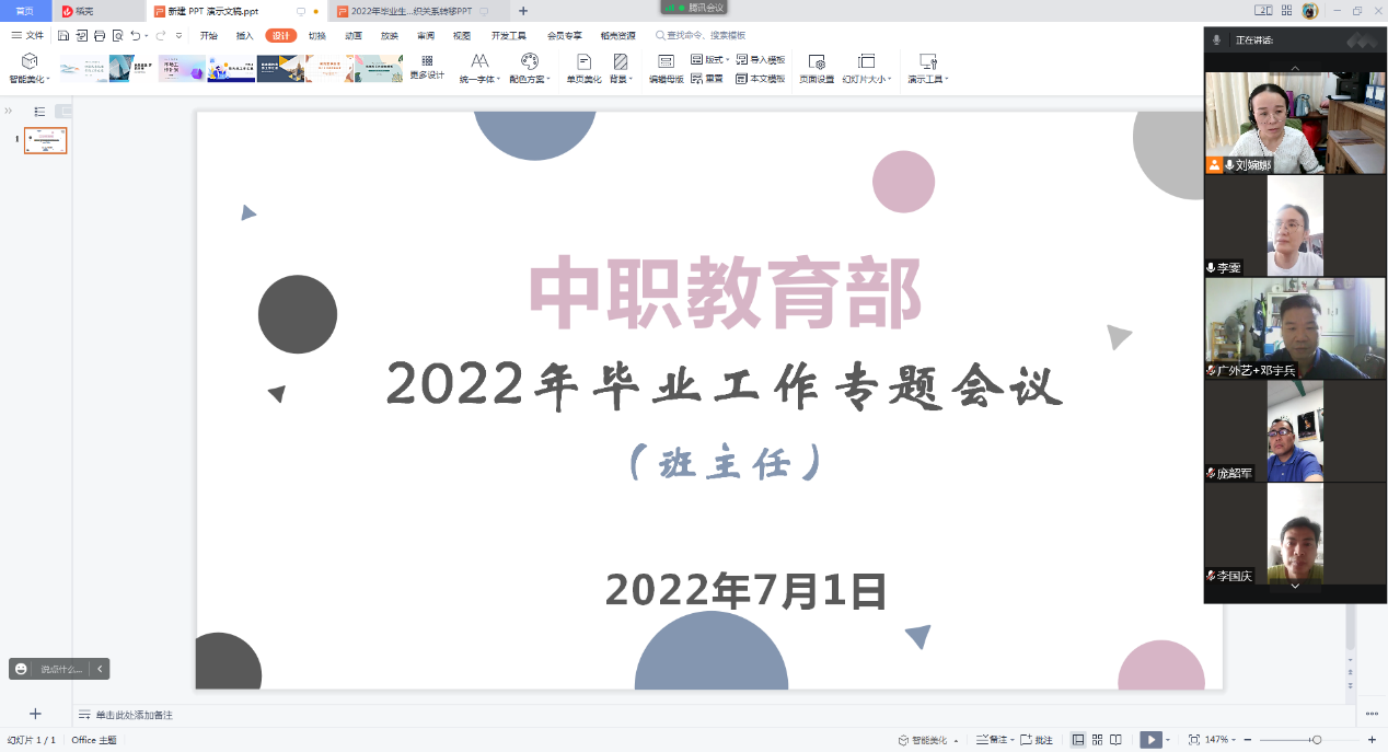 为做好2022届毕业生毕业相关工作,7月1日下午,中职教育部召开2022届毕业生工作专题线上会议,会议由党总支副书记李雯主持,学生科、团委等部门工作人员、各校区2019级班主任参加会议。