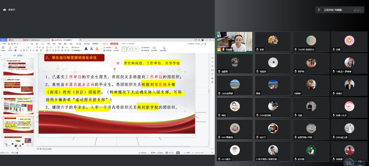 结合往年中职生团组织关系转接的情况,会议对将“团组织关系转接”作为重点培训内容。团委负责人刘婉娜通过团员转出流程指引、操作细节、转出注意事项、“智慧团建”系统的查看方法、团员转出工作的时间节点、各校区咨询方式等,进行了全面的指导和讲解。经过讲解,班主任对此项工作有了更进一步的认识,明白团组织关系转出的重要意义,并在会议上及时提出疑惑,刘老师也进行了细致的解答。