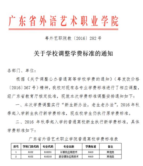 附件:关于学校调整学费标准的通知