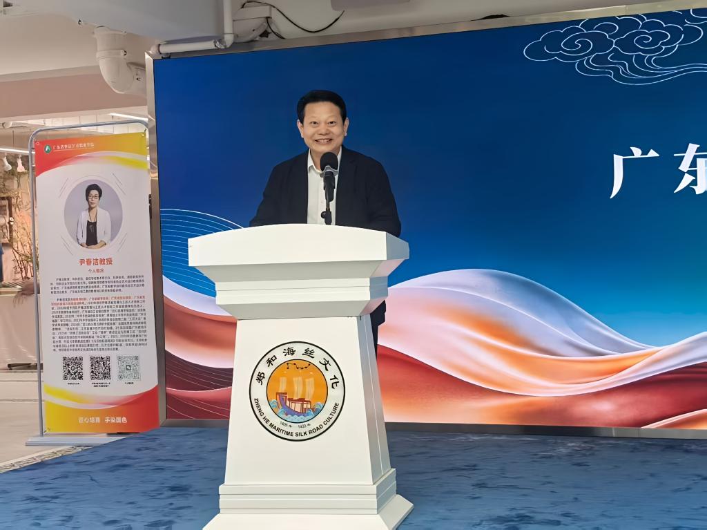 郝勇代表学校指出,职业教育与经济社会发展联系最紧密、与产业市场需求结合最直接,学校始终坚持以产定教、能力为本、集群推进,将劳模精神、劳动精神、工匠精神深度融入人才培养全过程。广东省劳动模范、全国优秀教师、植物染技艺第四代传承人尹春洁从教三十余年,创办“洁染不同”工作室,主动走进企业一线,以“非遗技艺+现代科技”的融合思路,为多家企业破解技术瓶颈、升级工艺、打造品牌,实现技艺传承、企业发展、学校育人、学生成长多方共赢。学校将以此次成果展为新起点,持续深化产教融合、做强特色优势,为广东文化传承创新与产业高质量发展贡献广外艺力量。