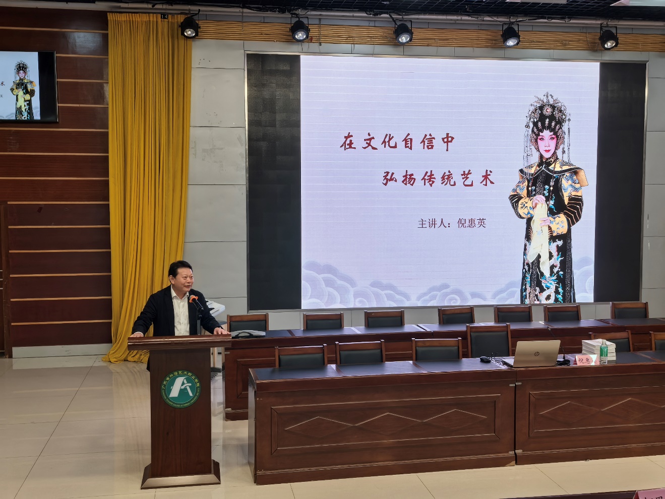 为厚植师生文化自信,推动传统文化进校园,4月24日下午,学校“广外艺大讲堂”第二期邀请著名粤剧大师倪惠英,开展主题为《在文化自信中弘扬传统艺术》的专题讲座。活动由学校党委副书记、校长郝勇主持,艺术教育学院承办,师生代表参加活动。