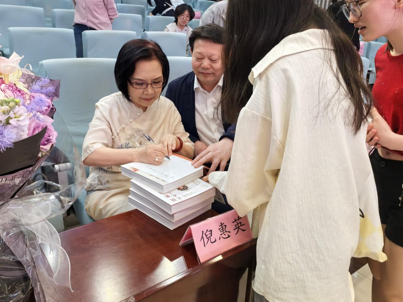 谈及粤剧传承创新,倪大师重点分享了《粤剧表演艺术大全》的编撰历程与价值。这套集文、图、音、像于一体的文化工程,涵盖《做打卷》《唱念卷》等五大卷,系统梳理了粤剧表演程式、唱腔体系、舞美技艺等核心内容,抢救了大批濒临失传的绝技绝活,为传统艺术传承奠定了坚实基础。她指出,粤剧的生命力在于“守正创新”,既要坚守粤剧传统艺术本质,也要吸收现代艺术元素,像《白蛇传・情》《花月影》等作品那样,让传统艺术焕发时代活力。她特别嘱咐在场学生:“粤剧艺术的精髓藏在慢下来的时光里,希望大家能摒弃浮躁、静下心来,以敬畏之心欣赏每一段唱腔的韵律、每一个身段的内涵,在日积月累的学习与感悟中,真正走进粤剧、读懂粤剧。”