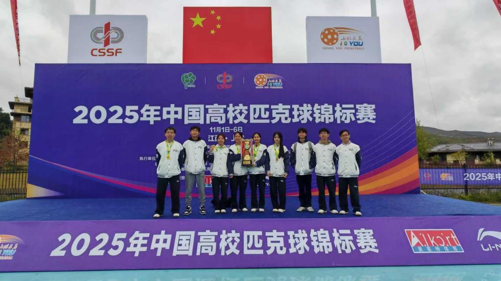 2025年11月1日至6日,中国高校匹克球锦标赛在江西省上犹生态匹克球运动中心成功举办。作为习近平总书记复信美国马里兰州青少年匹克球队访华团后国内举办的最高级别高校匹克球赛事,本次比赛汇聚了来自全国百余所高校的1000余名运动员。学校匹克球队在张茂添教练的带领下,共派出6名男女运动员参赛。经过激烈角逐,校匹克球队奋勇拼搏,最终斩获乙组女子团体第一名、乙组男子团体第三名的优异成绩,为学校体育事业再添光彩。