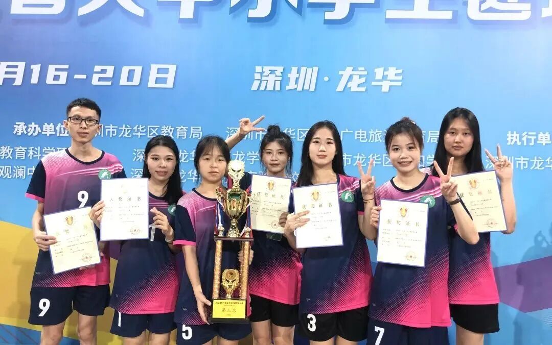 2023年广东省大学生毽球锦标赛女子三人团体赛和女子双打冠军、女子单打亚军,团体总分第三名;