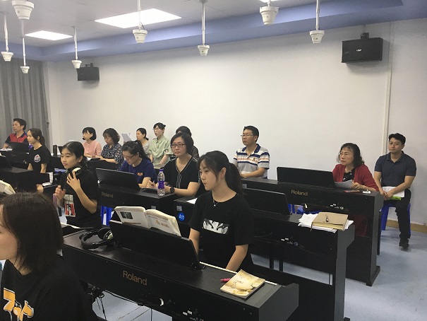 天河职中校长戚韶梅、教导处、教学督导及学前教育专业教师参与了本次教研活动。大家先后观摩了《儿歌弹唱与伴奏》和《幼儿园班级管理》课程的课堂教学。