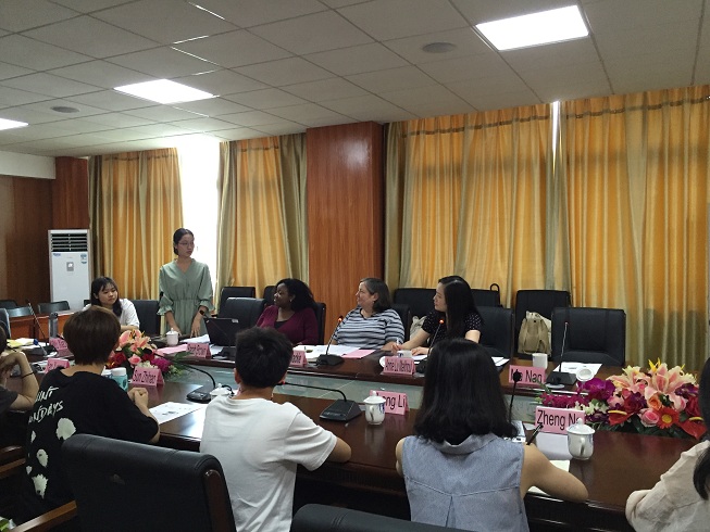 6月6日下午,英国伯明翰城市大学副校长克莱尔·麦基(Clare Mackie)教授、商业、法律和社会科学学院副院长安妮·卢·马库尔(Annie Lu Makhoul)教授、质量保证专员萨拉·布朗(Sarah Brown)女士和国际交流处处长马南博士一行4人来访学前教育学院,对两校中外合作办学项目(学前教育专业专科层次中外合作办学3+0项目)进行实地考察和座谈。我院党总支书记孙志豪、院长张莉、副院长郑娜、颜雪梅及教师、学生代表参加了本次座谈会。