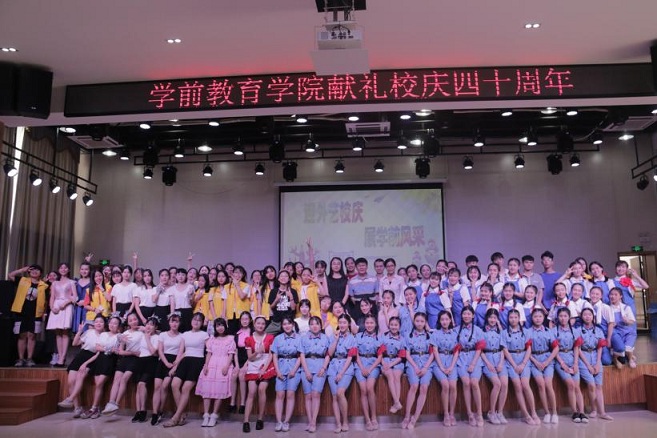 为了喜迎我校四十周年校庆,5月28日下午,学前教育学院在图书馆四楼演艺厅举行了献礼校庆 四十周年之“展学前风采,迎外艺校庆”文艺汇演,我院师生近300人参加了庆典。