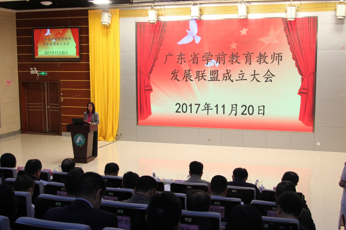 为深入贯彻落实习近平总书记在党的十九大报告中提出的“幼有所育,学有所教”的教育强国理念,乘着广东省建设“新师范”的东风,11月20日,广东省学前教育教师发展联盟大会在我校五山校区学术报告厅召开,20个地市教育局、25所高等院校、9所中等学校、15家幼儿园,14家教育机构,1家出版机构和一个行业组织约110人参加了成立大会。本次会议由我校党总支书记卢羡文主持。