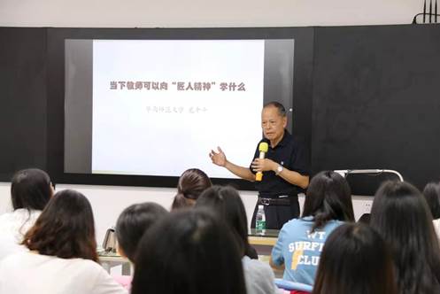 开班典礼后,扈中平教授为学员讲授题为《当下教师可以向“匠人精神”学什么》的专题讲座,指出提倡“匠人精神”,不是要教师们无限度地奉献和牺牲。“匠人精神”中蕴含的道德价值取向是利己与利他的统一。富有“匠人精神”的教师是快乐的、幸福的。扈教授以精深的专业知识、深刻的批判性思维以及风趣诙谐的语言备受学员欢迎,学习气氛浓烈,课堂掌声不断。