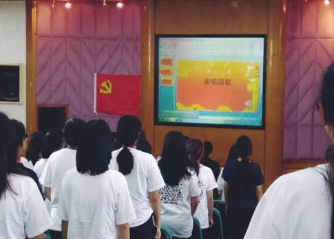 图:全体起立奏唱国歌