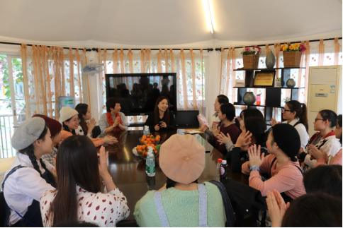 图:广外幼儿园张园长对同学们的演出进行点评指导