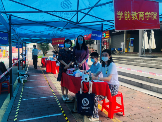 5月29日,燕岭校区校门口设摊置点,迎接第二批返校毕业生归来。其中,学前教育学院第二批163名毕业生在今天平安、顺利返校,至此学前已经有序完成了第一、二批共319名学生的安全返校工作。