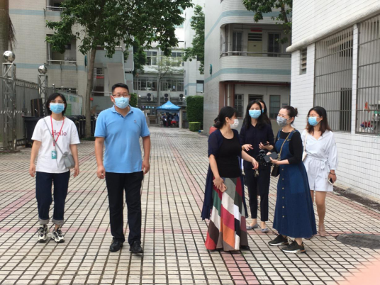 图:我校副校长郝勇实地查看校门口返校接待流程