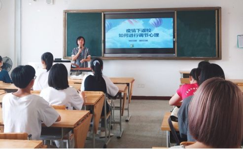 接着,吴文利老师为各班心委开展了“疫情下返校,如何进行调节心理”的主题培训。她说,一、疫情返校,同学们需调整好自己的心理状态,从成员相对单纯的居家空间转变为成员较为复杂的集体宿舍,从宅在家里的线上教学转变为要到教室中的现场教学,要对生活和学习做出新的调整和适应,在这个过程中难免会出现适应不良,学会掌握调整的方法和自我调试非常重要。二、重回校园,不妨安心当下,制定相关的学业目标,乘风破浪。三、心委是班级的观察者,要善于发现同学们的需求,理解他们需求,当发现班上同学有心理困扰,学会倾听和帮助,在工作中也要学会自我关爱,助人自助。