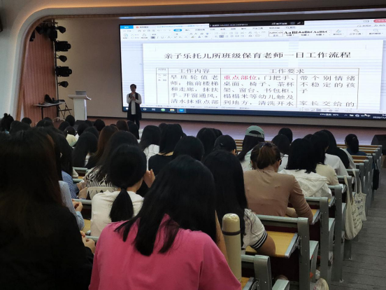 11月2日上午,早教教研室主任陈书昆老师为2018级早期教育专业学生做了题为《教育部“1+x”证书制度与幼儿照护职业技能证书标准解读》,为学生详细介绍了“1+x”证书制度的源来以及职业技能证书的特点和作用。11月3日上午,学院邀请海珠区第一所示范性普惠型托育中心亲子乐托儿所的负责人李玲园长,她围绕幼儿照护职业技能标准的要求,对0-3岁婴幼儿托育机构生活照护工作进行了详细讲解和指导。