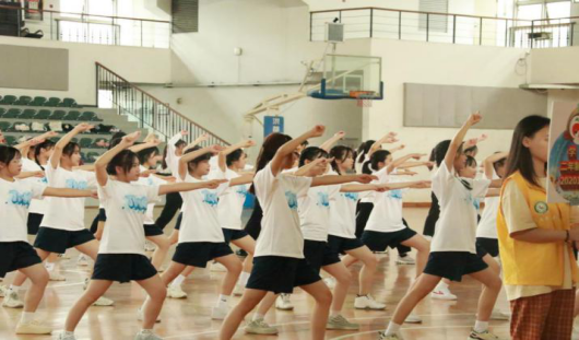 前站定。伴随着熟悉而又愉快的广播操音乐的响起,同学们昂首挺胸、伸臂、扩胸、转体、踢腿、弯腰等动作娴熟到位,张弛有度,脸上洋溢着少年的朝气,带着自信的笑容,一举一动都书写着新时代青年的英姿,用最优美而有力的动作展示出了学前学子青春靓丽、激情拼搏的少年风采。