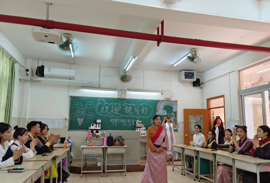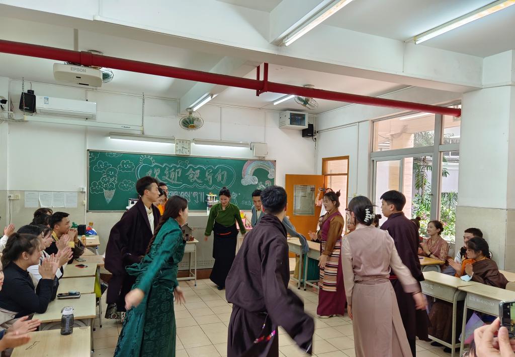 图:甘孜学子载歌载舞欢迎我校老师