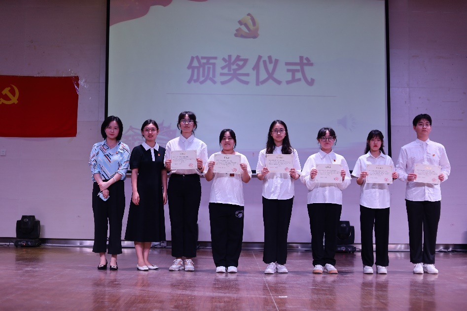 各小组展示完毕,师生共同观看学习视频《为党育人,团校由来,青春中国》。老师分别为微党课获奖团队、2021年国家奖学金和国家励志奖学金获得者颁发了奖状。