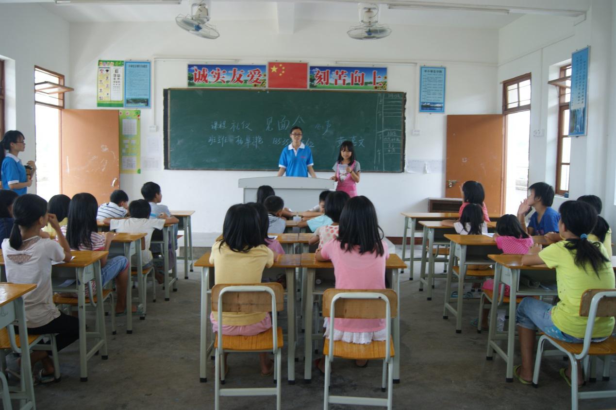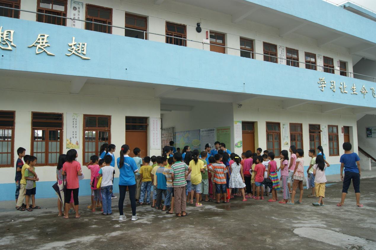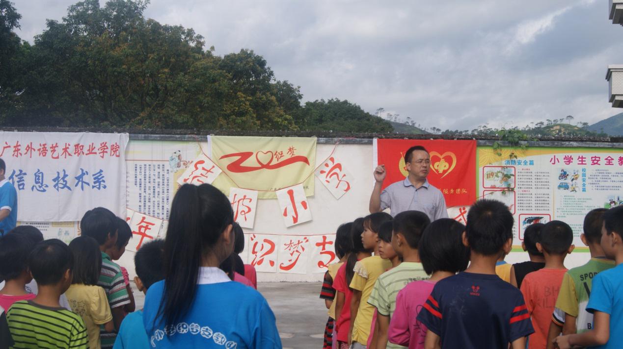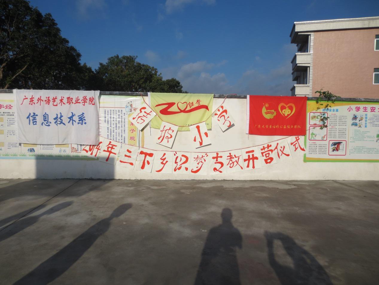 7月13日,广外艺信息技术系“织梦”支教队在到达茂名市信宜市北界镇结坡小学第三天时开展暑假三下乡开营仪式。结坡小学卢江校长,报名参加此次支教班级的全体学生、支教队成员、部分学生家长出席此次开营仪式。