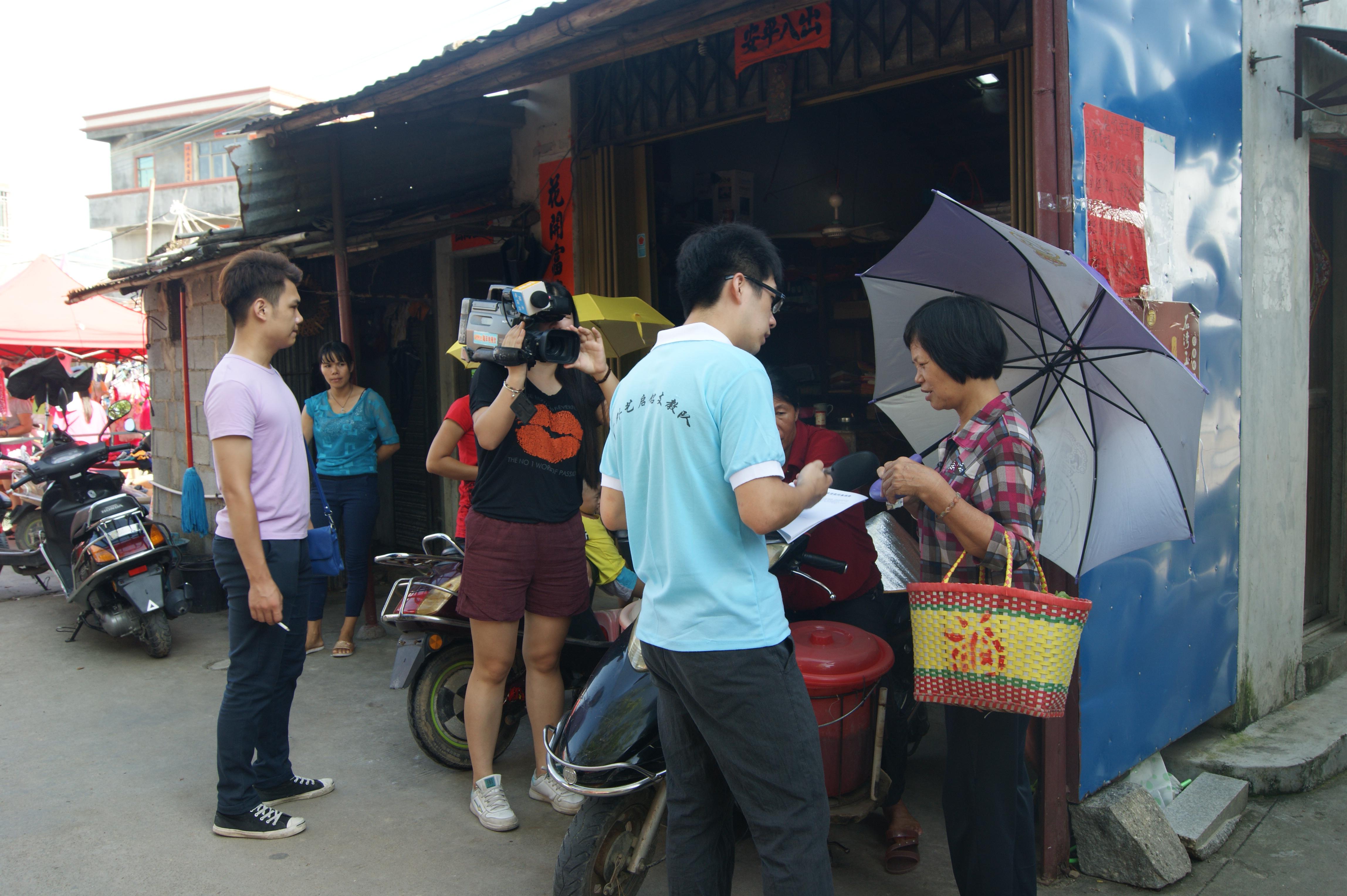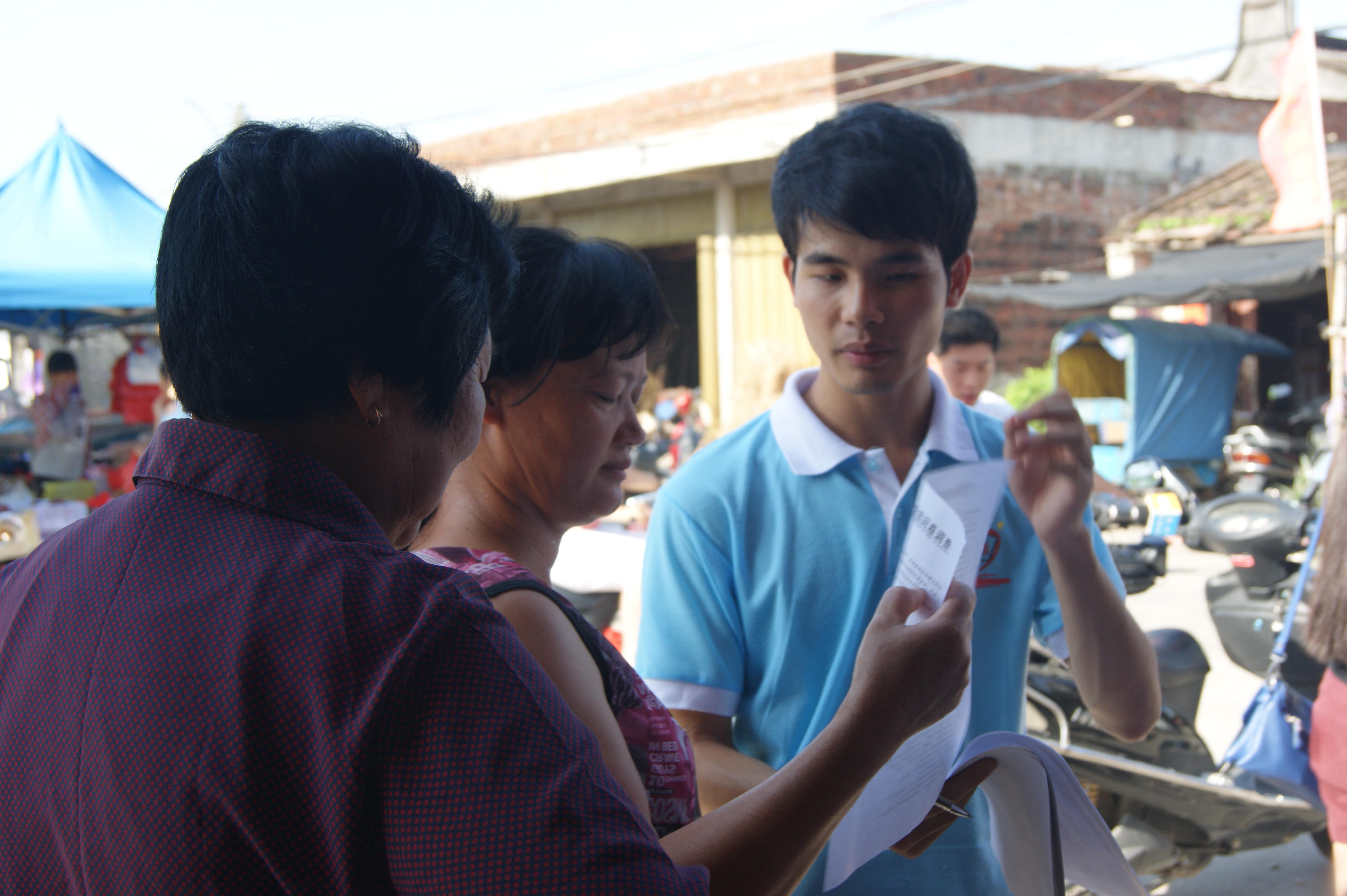 启铭支教队还利用晚上时间进行家访和调研,开展国家助学贷款宣传工作。20日上午,广外艺信息系启铭支教队联合广药青鸟支教队在人流量密集的上埔市场设点开展国家助学贷款宣传活动。活动吸引了当地群众和新闻媒体的关注,陆丰电视台还就此次活动特地进行了现场采访与报道。