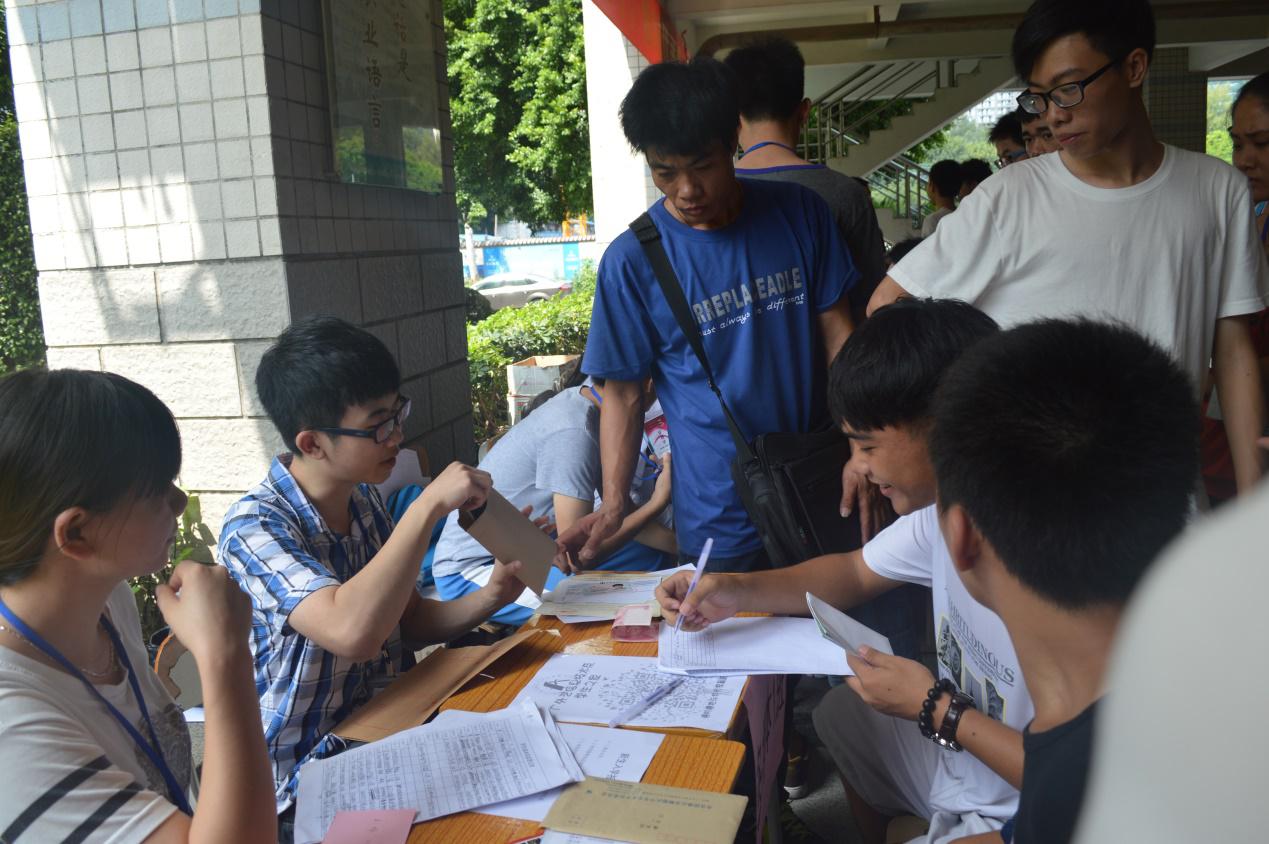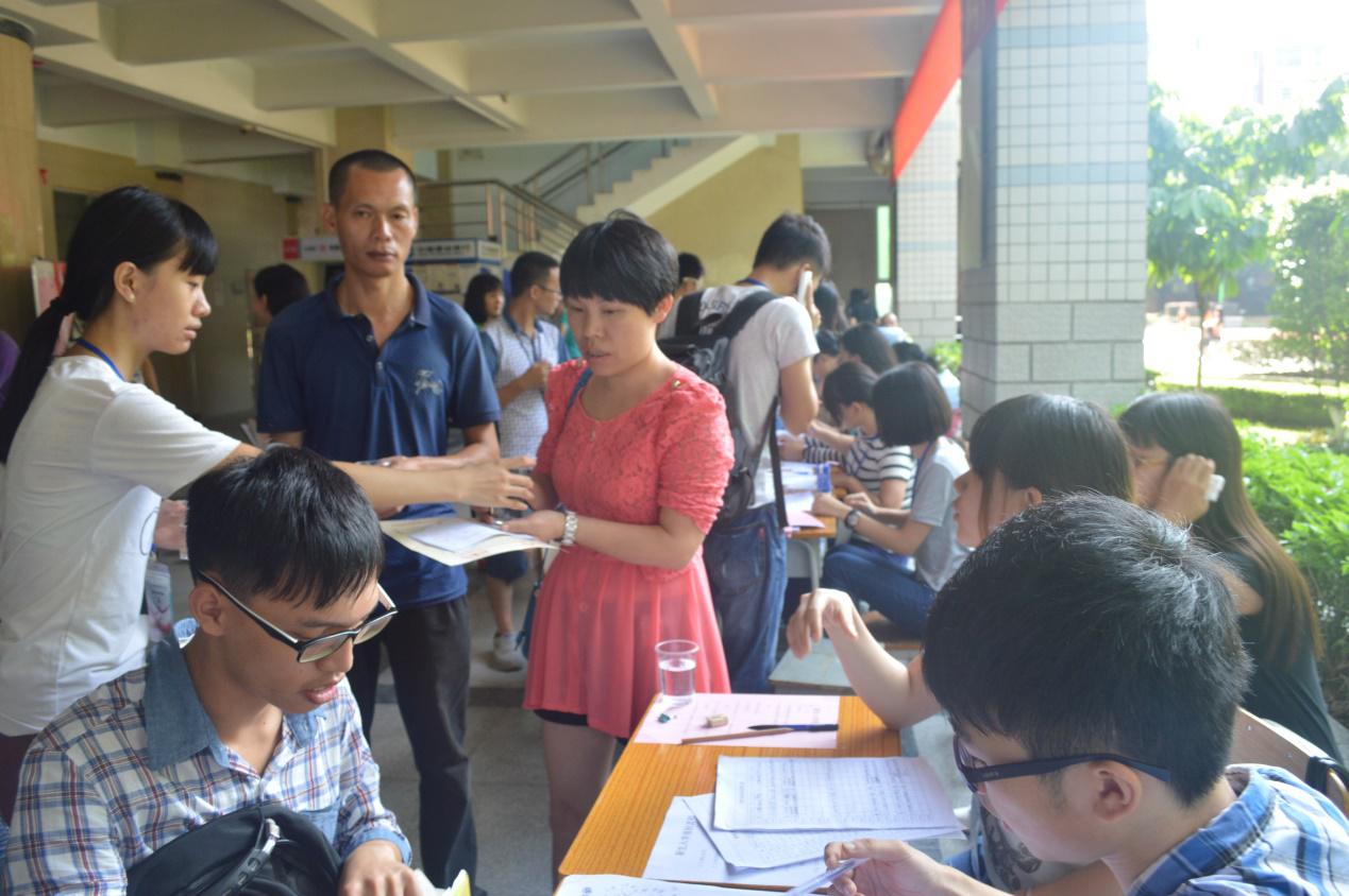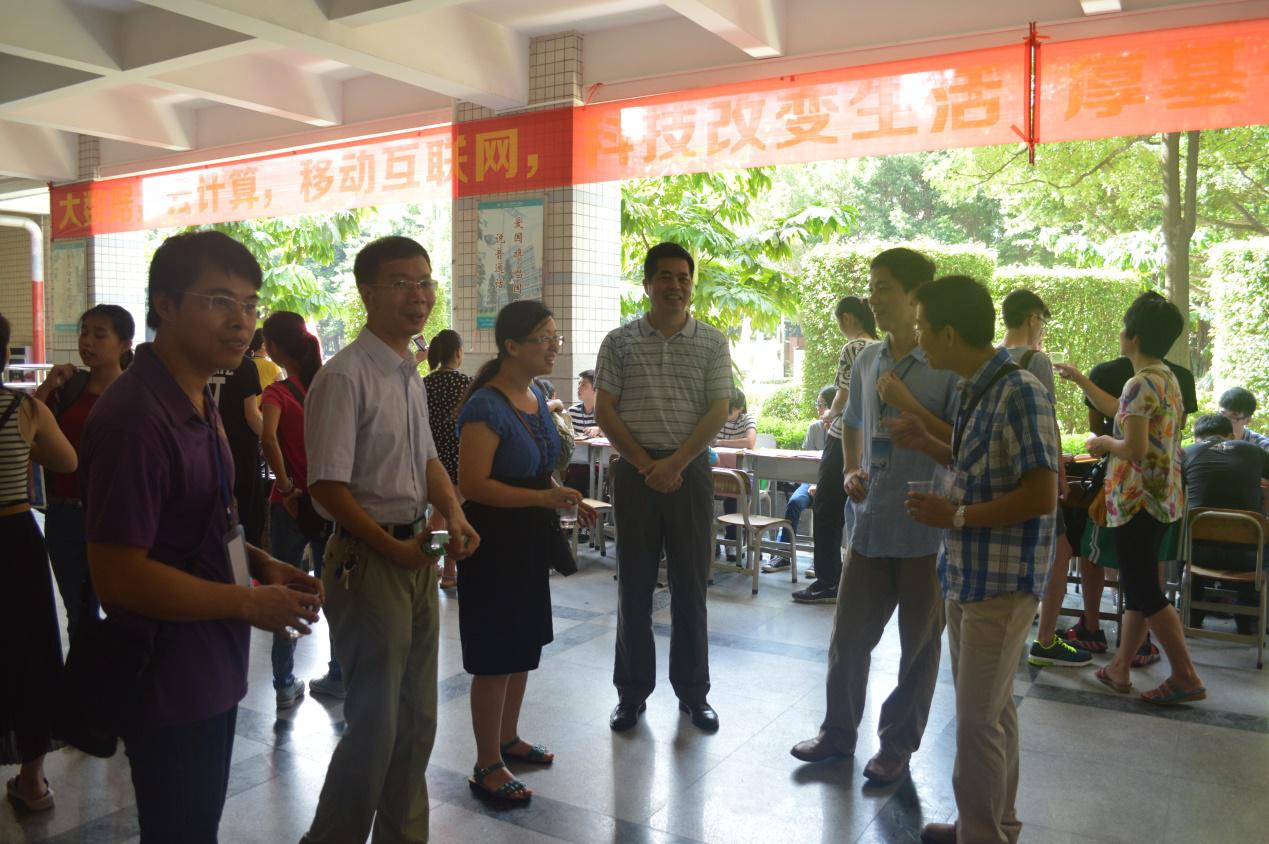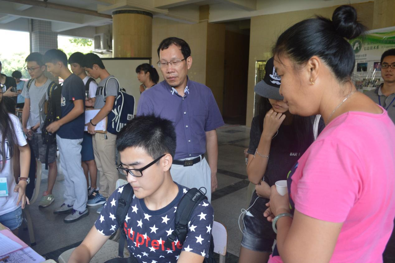 图五:系党委书记叶康荣、周向军主任等领导询问迎新情况