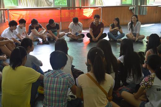 今年我系把大学新生的第一次班会与心理素质训练活动相结合,以达到新生们在活动中相识、在相识后相交、在相交后融入集体的目标。在对话环节,德育老师和新生们席地而坐,与新生真诚亲切交谈,并以自身的经历告诉新生如何调适以快速适应大学学习和生活,如何奋斗才不虚度大学时光。德育老师对班级的发展提出自己的看法,也耐心地解答新生对于本专业的疑问,现场氛围十分活跃。游戏环节,助班组织新生和德育老师一起进行心理素质拓展训练,通过“棉花棉花几朵开”、“滚雪球”等活动,新生们在认识朋友的同时也展示自己的特点,更锻炼了自己的语言表达能力,增强了自信,最初的陌生感、拘束感一扫而去,彼此变得熟悉起来,互动的积极性和交流的迫切性也越来越强烈,大家的大学归属感初步建立。