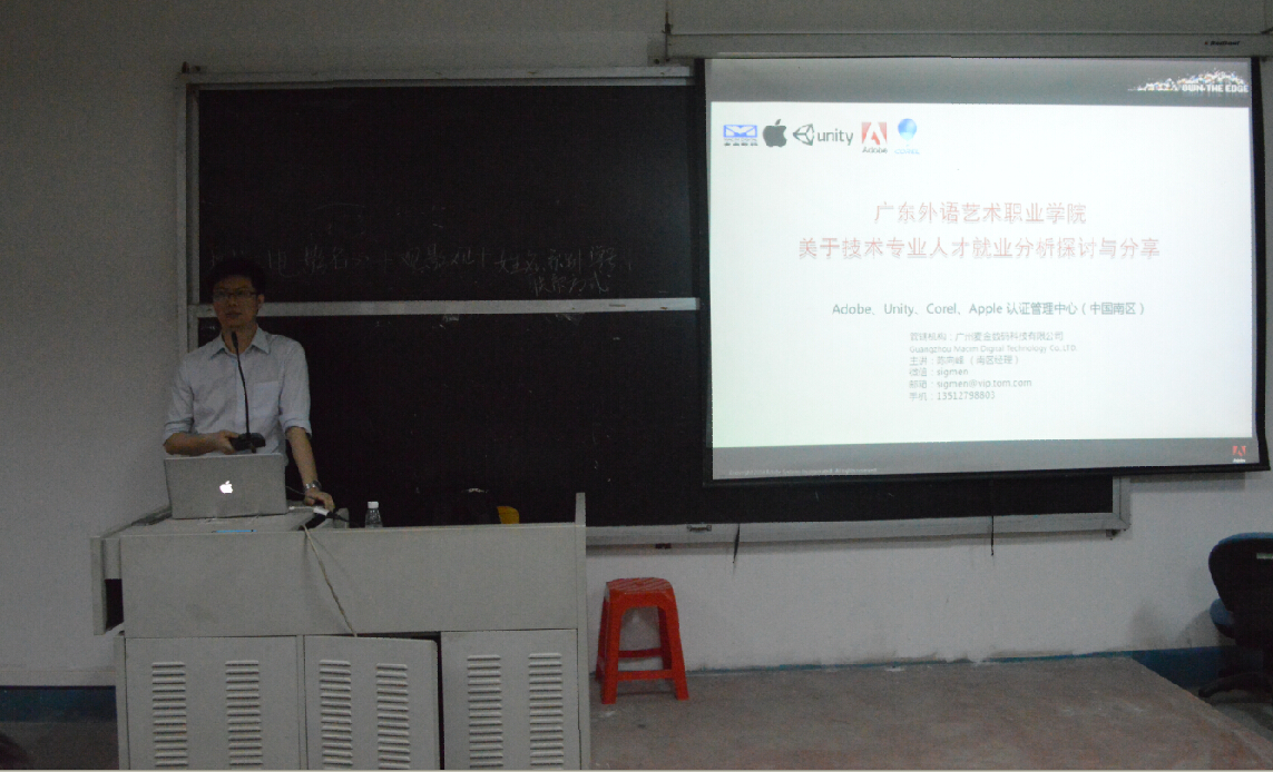 5月12日晚上18:30,信息系在信息楼201课室举办了一场关于Adobe认证及就业技术人才探讨分享会,陈向峰经理向同学们讲述了公司的基本情况,接着对目前的就业严峻情况进行了分析,现在国家注重的是技术人才,然而,我们国家还处于人才供不应求的状况,经理向同学们提出了“理论知识和专业知识是必须要掌握的,更要提高自己的动手能力”这样的初略来应对目前的就业难。